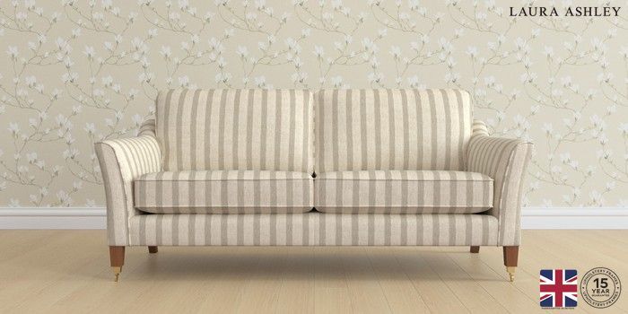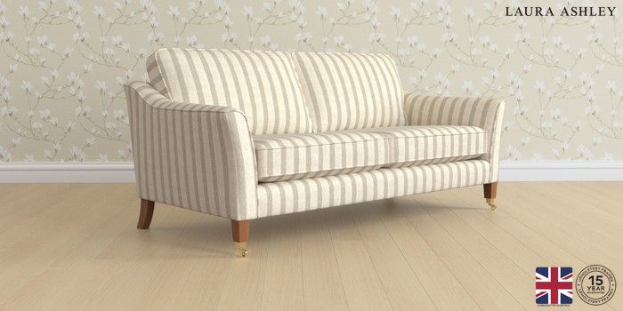 6.12.1 Buy Marford by Laura Ashley 3 Seater Sofa Kinsham Stripe Natural Straight Brass Castor - Teak from the Laura Ashley online shop Click here to use our website with more accessibility support, for example screen readers