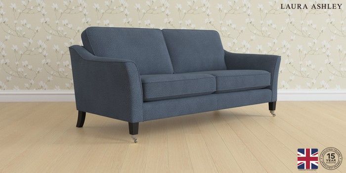 6.12.1 Buy Marford by Laura Ashley 3 Seater Sofa Lundar Chenille Navy Blue Straight Chrome Castor - Black from the Laura Ashley online shop Click here to use our website with more accessibility support, for example screen readers