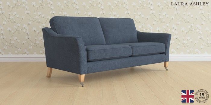 6.12.1 Buy Marford by Laura Ashley 3 Seater Sofa Lundar Chenille Navy Blue Straight Chrome Castor - Light Oak from the Laura Ashley online shop Click here to use our website with more accessibility support, for example screen readers