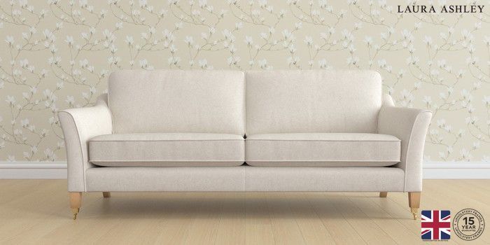 7.2.6 Buy Marford by Laura Ashley 4 Seater Sofa Anneliese Oyster Natural Straight Brass Castor - Light Oak from the Laura Ashley online shop Click here to use our website with more accessibility support, for example screen readers