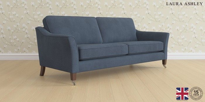 6.12.1 Buy Marford by Laura Ashley 4 Seater Sofa Lundar Chenille Navy Blue Straight Chrome Castor - Chestnut from the Laura Ashley online shop Click here to use our website with more accessibility support, for example screen readers