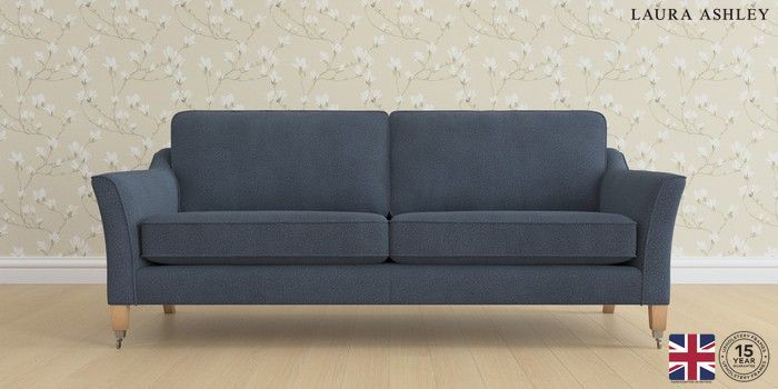 6.12.1 Buy Marford by Laura Ashley 4 Seater Sofa Lundar Chenille Navy Blue Straight Chrome Castor - Light Oak from the Laura Ashley online shop Click here to use our website with more accessibility support, for example screen readers