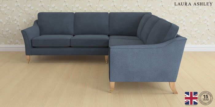 6.12.1 Buy Marford by Laura Ashley Medium Corner Sofa - Universal Lundar Chenille Navy Blue Straight Brass Castor - Light Oak from the Laura Ashley online shop Click here to use our website with more accessibility support, for example screen readers