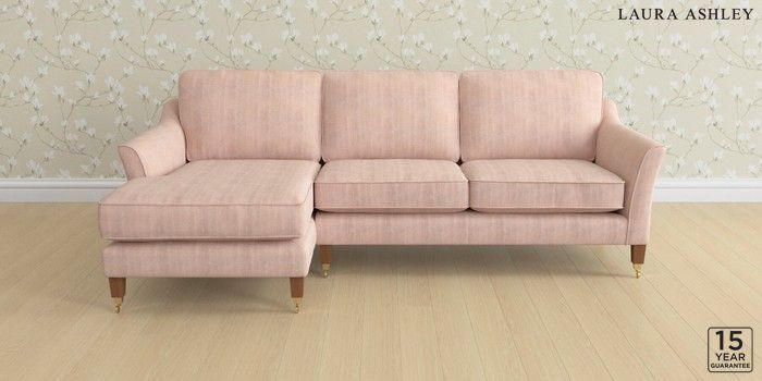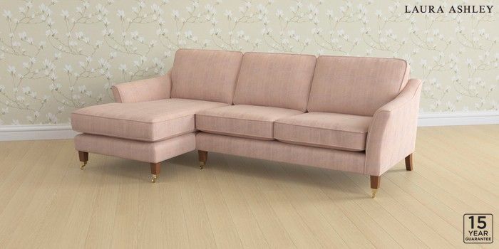 6.12.1 Buy Marford by Laura Ashley Medium Sofa Chaise - Left Hand Edwin Chenille Blush Pink Straight Brass Castor - Teak from the Laura Ashley online shop Click here to use our website with more accessibility support, for example screen readers