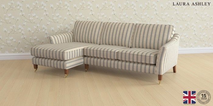 6.12.1 Buy Marford by Laura Ashley Medium Sofa Chaise - Left Hand Kinsham Stripe Seaspray Blue Straight Brass Castor - Teak from the Laura Ashley online shop Click here to use our website with more accessibility support, for example screen readers