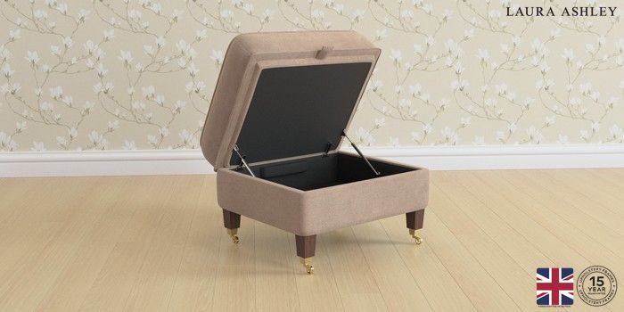 6.12.1 Buy Marford by Laura Ashley Storage Footstool Ailsworth Mink Natural Straight Brass Castor - Chestnut from the Laura Ashley online shop Click here to use our website with more accessibility support, for example screen readers