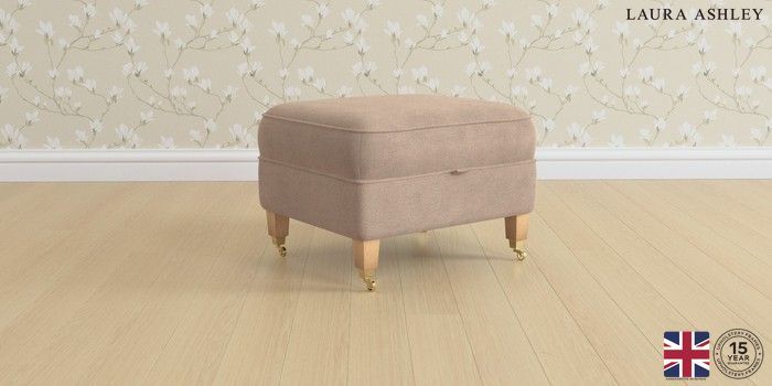 6.12.1 Buy Marford by Laura Ashley Storage Footstool Ailsworth Mink Natural Straight Brass Castor - Light Oak from the Laura Ashley online shop Click here to use our website with more accessibility support, for example screen readers