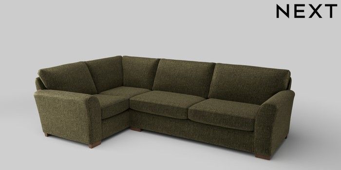 6.12.1 Buy Michigan II Large Corner Sofa - Left Hand Plush Chenille Moss Green Slim Block - Mid from the Laura Ashley online shop Click here to use our website with more accessibility support, for example screen readers