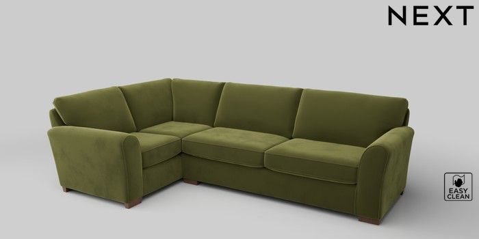 6.12.1 Buy Michigan II Large Corner Sofa - Left Hand Plush Velvet Easy Clean Mid Olive Green Slim Block - Mid from the Laura Ashley online shop Click here to use our website with more accessibility support, for example screen readers