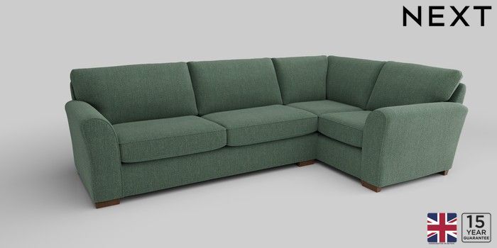 6.12.1 Buy Michigan II Large Corner Sofa - Right Hand Chunky Texture Mid Forest Green Slim Block - Mid from the Laura Ashley online shop Click here to use our website with more accessibility support, for example screen readers