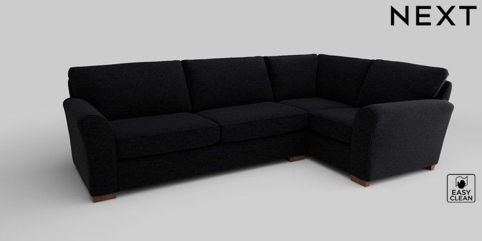 6.12.1 Buy Michigan II Large Corner Sofa - Right Hand Fine Chenille Easy Clean Black Slim Block - Mid from the Laura Ashley online shop Click here to use our website with more accessibility support, for example screen readers
