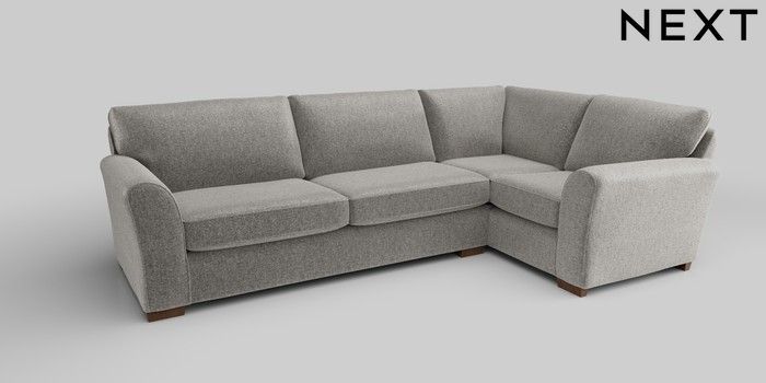 6.12.1 Buy Michigan II Large Corner Sofa - Right Hand Plush Chenille Light Grey Slim Block - Mid from the Laura Ashley online shop Click here to use our website with more accessibility support, for example screen readers