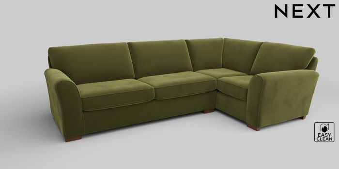 6.12.1 Buy Michigan II Large Corner Sofa - Right Hand Plush Velvet Easy Clean Mid Olive Green Slim Block - Mid from the Laura Ashley online shop Click here to use our website with more accessibility support, for example screen readers