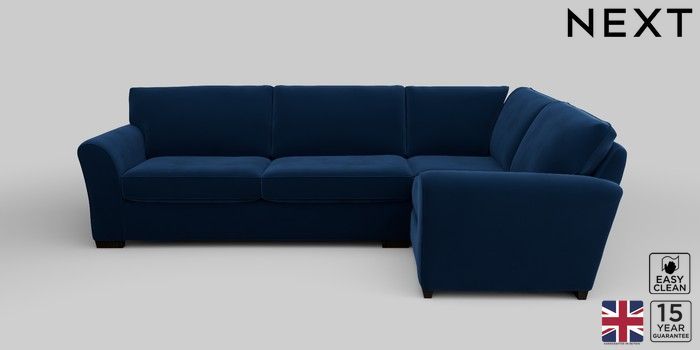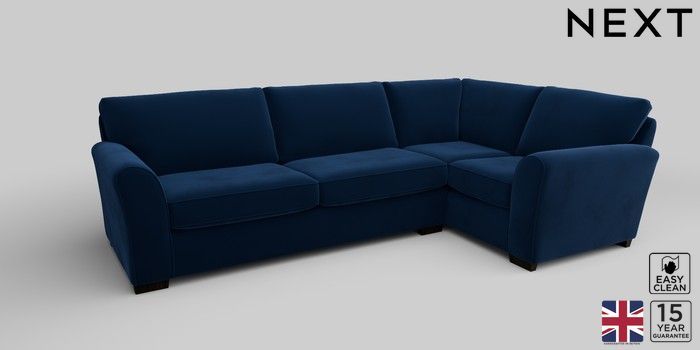 6.12.1 Buy Michigan II Large Corner Sofa - Right Hand Plush Velvet Easy Clean Navy Blue Slim Block - Dark from the Laura Ashley online shop Click here to use our website with more accessibility support, for example screen readers