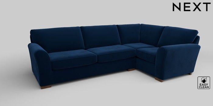 6.12.1 Buy Michigan II Large Corner Sofa - Right Hand Plush Velvet Easy Clean Navy Blue Slim Block - Mid from the Laura Ashley online shop Click here to use our website with more accessibility support, for example screen readers
