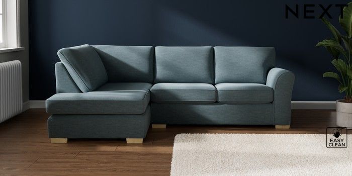 7.3.1 Buy Michigan II Medium Corner Chaise - Left Hand Fine Chenille Easy Clean Mid Blue Slim Block - Light from the Laura Ashley online shop