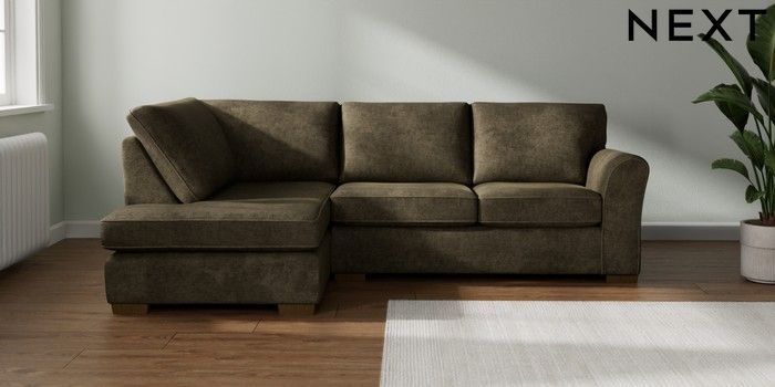 7.3.1 Buy Michigan II Medium Corner Chaise - Left Hand Plush Chenille Moss Green Slim Block - Mid from the Laura Ashley online shop