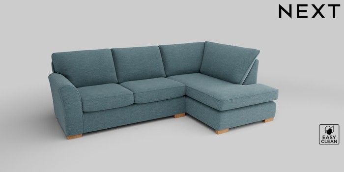 6.12.1 Buy Michigan II Medium Corner Chaise - Right Hand Fine Chenille Easy Clean Mid Blue Slim Block - Light from the Laura Ashley online shop Click here to use our website with more accessibility support, for example screen readers