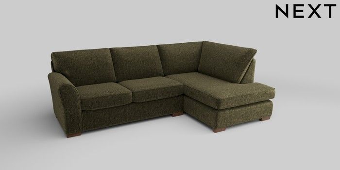 6.12.1 Buy Michigan II Medium Corner Chaise - Right Hand Plush Chenille Moss Green Slim Block - Mid from the Laura Ashley online shop Click here to use our website with more accessibility support, for example screen readers