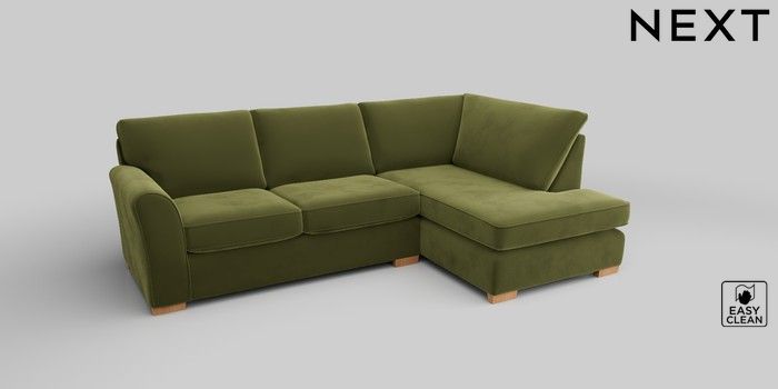 6.12.1 Buy Michigan II Medium Corner Chaise - Right Hand Plush Velvet Easy Clean Mid Olive Green Slim Block - Light from the Laura Ashley online shop Click here to use our website with more accessibility support, for example screen readers