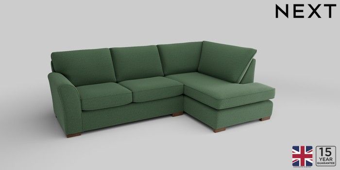 6.12.1 Buy Michigan II Medium Corner Chaise - Right Hand Relaxed Linen Look Dark Green Slim Block - Mid from the Laura Ashley online shop Click here to use our website with more accessibility support, for example screen readers