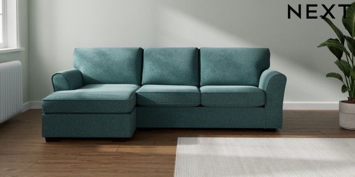 7.3.1 Buy Michigan II Medium Sofa Chaise - Left Hand Chunky Chenille Mid Teal Green Slim Block - Dark from the Laura Ashley online shop