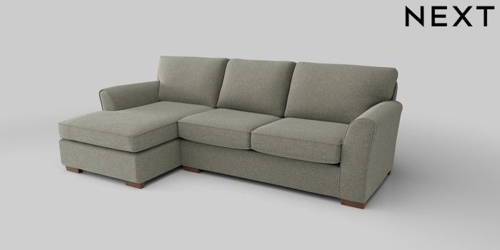 6.12.1 Buy Michigan II Medium Sofa Chaise - Left Hand Chunky Marl Light Olive Green Slim Block - Mid from the Laura Ashley online shop Click here to use our website with more accessibility support, for example screen readers