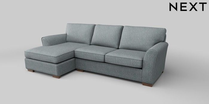 6.12.1 Buy Michigan II Medium Sofa Chaise - Left Hand Chunky Weave Mid Blue Slim Block - Mid from the Laura Ashley online shop Click here to use our website with more accessibility support, for example screen readers