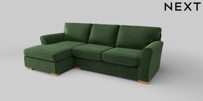 6.12.1 Buy Michigan II Medium Sofa Chaise - Left Hand Luxe Chenille Dark Green Slim Block - Light from the Laura Ashley online shop Click here to use our website with more accessibility support, for example screen readers