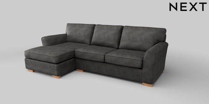 6.12.1 Buy Michigan II Medium Sofa Chaise - Left Hand Monza Faux Leather Easy Clean Dark Grey Slim Block - Light from the Laura Ashley online shop Click here to use our website with more accessibility support, for example screen readers