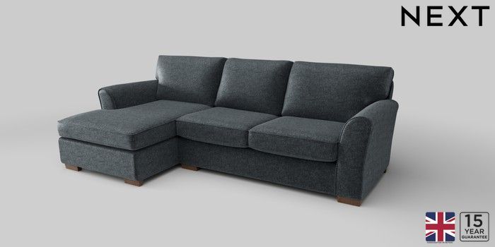 6.12.1 Buy Michigan II Medium Sofa Chaise - Left Hand Plush Chenille Slate Blue Slim Block - Mid from the Laura Ashley online shop Click here to use our website with more accessibility support, for example screen readers
