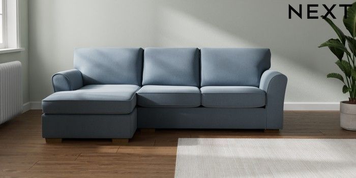 7.3.1 Buy Michigan II Medium Sofa Chaise - Left Hand Relaxed Linen Look Mid Blue Slim Block - Mid from the Laura Ashley online shop