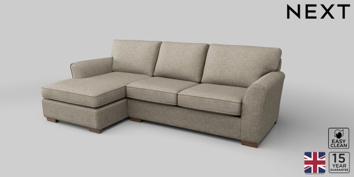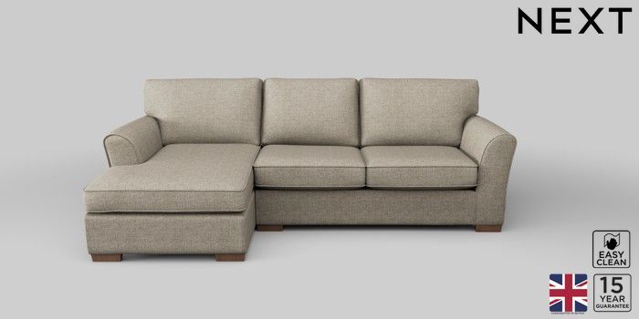 6.12.1 Buy Michigan II Medium Sofa Chaise - Left Hand Woven Chenille Easy Clean Mid Natural Slim Block - Mid from the Laura Ashley online shop Click here to use our website with more accessibility support, for example screen readers