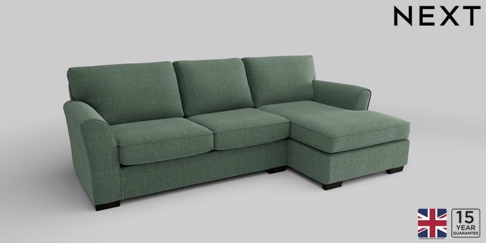 6.12.1 Buy Michigan II Medium Sofa Chaise - Right Hand Chunky Texture Mid Forest Green Slim Block - Dark from the Laura Ashley online shop Click here to use our website with more accessibility support, for example screen readers