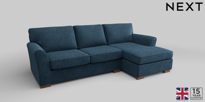 6.12.1 Buy Michigan II Medium Sofa Chaise - Right Hand Cotswold Chenille Dark Blue Slim Block - Mid from the Laura Ashley online shop Click here to use our website with more accessibility support, for example screen readers