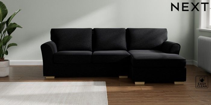 7.3.1 Buy Michigan II Medium Sofa Chaise - Right Hand Fine Chenille Easy Clean Black Slim Block - Light from the Laura Ashley online shop
