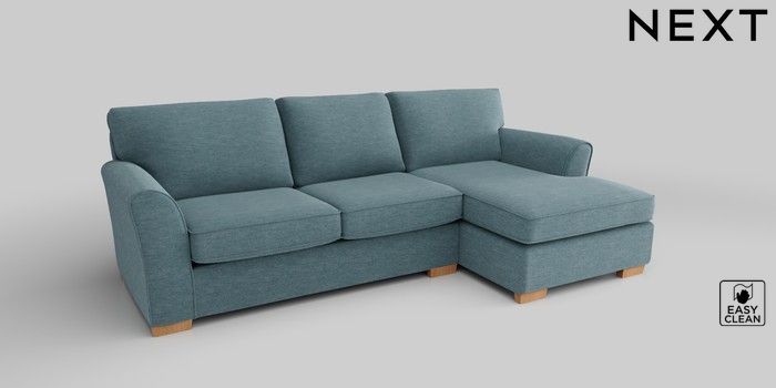 6.12.1 Buy Michigan II Medium Sofa Chaise - Right Hand Fine Chenille Easy Clean Mid Blue Slim Block - Light from the Laura Ashley online shop Click here to use our website with more accessibility support, for example screen readers