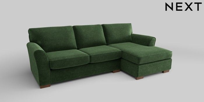 6.12.1 Buy Michigan II Medium Sofa Chaise - Right Hand Luxe Chenille Dark Green Slim Block - Mid from the Laura Ashley online shop Click here to use our website with more accessibility support, for example screen readers
