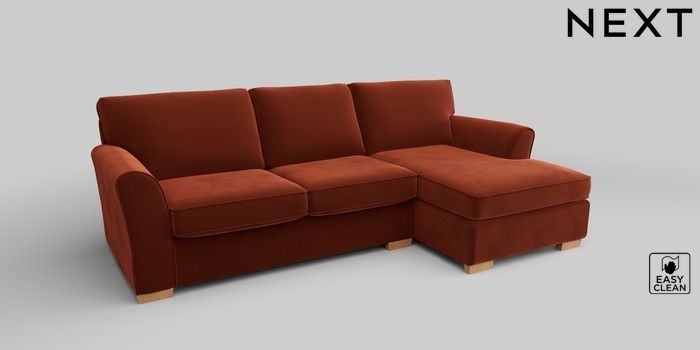 6.12.1 Buy Michigan II Medium Sofa Chaise - Right Hand Plush Velvet Easy Clean Ginger Orange Slim Block - Light from the Laura Ashley online shop Click here to use our website with more accessibility support, for example screen readers