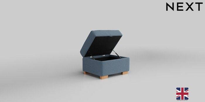 6.12.1 Buy Michigan II Storage Footstool Relaxed Linen Look Mid Blue Small Slim Block - Light from the Laura Ashley online shop Click here to use our website with more accessibility support, for example screen readers