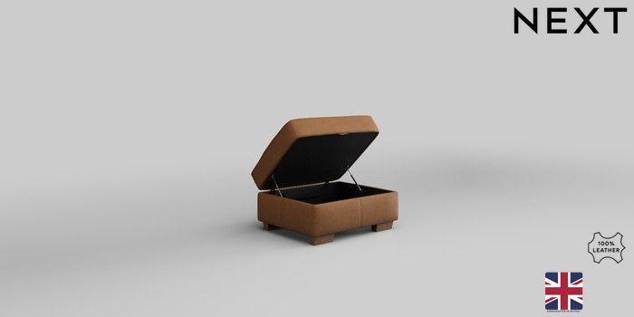 6.12.13 Buy Michigan Leather Storage Footstool Antiqued Leather Light Tan Brown Small Slim Block - Dark from the Laura Ashley online shop Click here to use our website with more accessibility support, for example screen readers