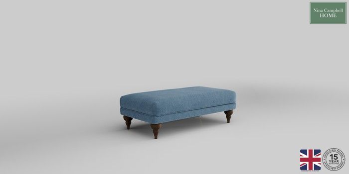 6.12.1 Buy Milner by Nina Campbell Footstool Soren Fine Boucle Soft Indigo Blue Turned - Dark from the Laura Ashley online shop Click here to use our website with more accessibility support, for example screen readers