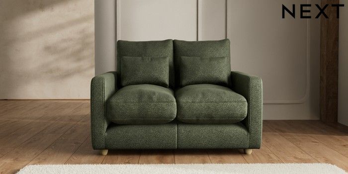 7.2.6 Buy N Premium Farndon Grand Relaxed Sit 2 Seater Small Sofa Boucle Chenille Dark Moss Green Wooden Glide - Light from the Laura Ashley online shop Click here to use our website with more accessibility support, for example screen readers