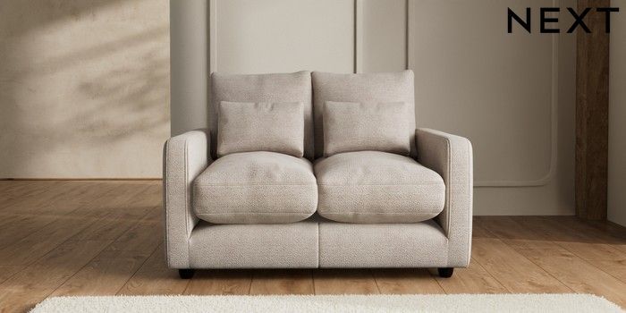 7.2.6 Buy N Premium Farndon Grand Relaxed Sit 2 Seater Small Sofa Boucle Chenille Light Natural Wooden Glide - Dark from the Laura Ashley online shop Click here to use our website with more accessibility support, for example screen readers