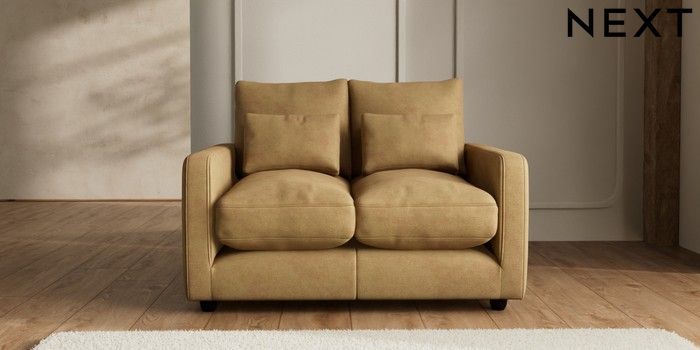 7.2.6 Buy N Premium Farndon Grand Relaxed Sit 2 Seater Small Sofa Luxe Chenille Honey Yellow Wooden Glide - Dark from the Laura Ashley online shop Click here to use our website with more accessibility support, for example screen readers