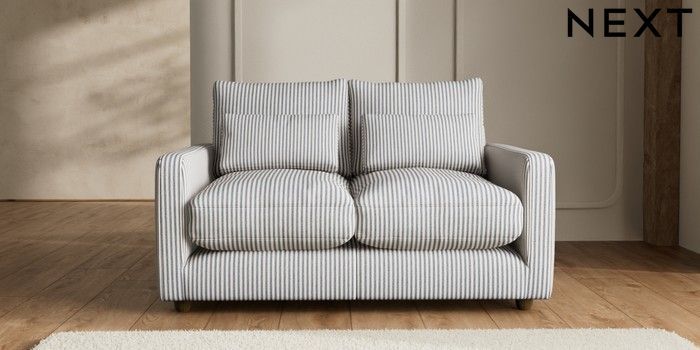 7.2.6 Buy N Premium Farndon Grand Relaxed Sit 2 Seater Sofa Chenille Stripe Slate Blue Wooden Glide - Mid from the Laura Ashley online shop Click here to use our website with more accessibility support, for example screen readers