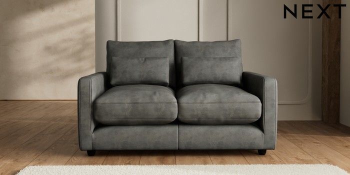 7.2.6 Buy N Premium Farndon Grand Relaxed Sit 2 Seater Sofa Monza Faux Leather Easy Clean Dark Grey Wooden Glide - Dark from the Laura Ashley online shop Click here to use our website with more accessibility support, for example screen readers