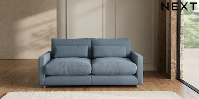 7.2.6 Buy N Premium Farndon Grand Relaxed Sit 3 Seater Sofa Relaxed Linen Look Mid Blue Wooden Glide - Light from the Laura Ashley online shop Click here to use our website with more accessibility support, for example screen readers