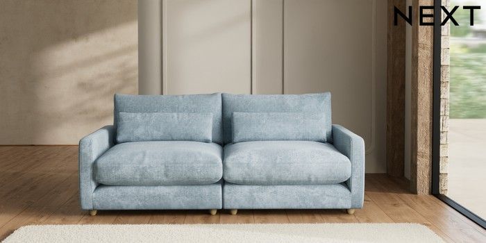 7.2.6 Buy N Premium Farndon Grand Relaxed Sit 4 Seater Sofa Plush Chenille Light Blue Wooden Glide - Light from the Laura Ashley online shop Click here to use our website with more accessibility support, for example screen readers