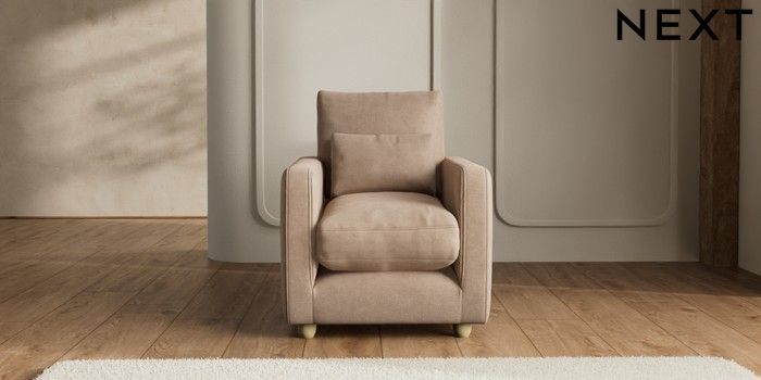 7.2.6 Buy N Premium Farndon Grand Relaxed Sit Armchair Luxe Chenille Mid Natural Wooden Glide - Light from the Laura Ashley online shop Click here to use our website with more accessibility support, for example screen readers